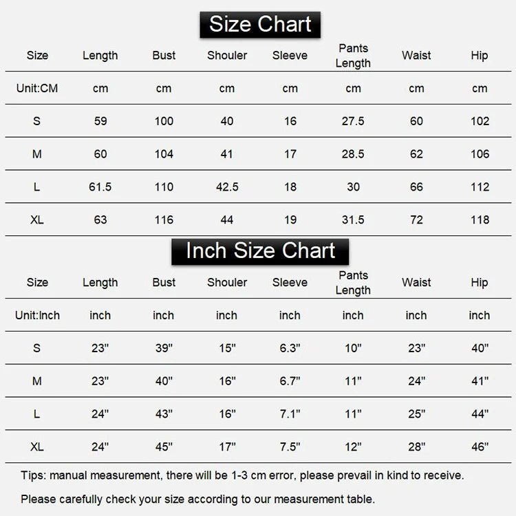 - Package Includes: 1 Short-Sleeve Top + 1 Pair of Shorts