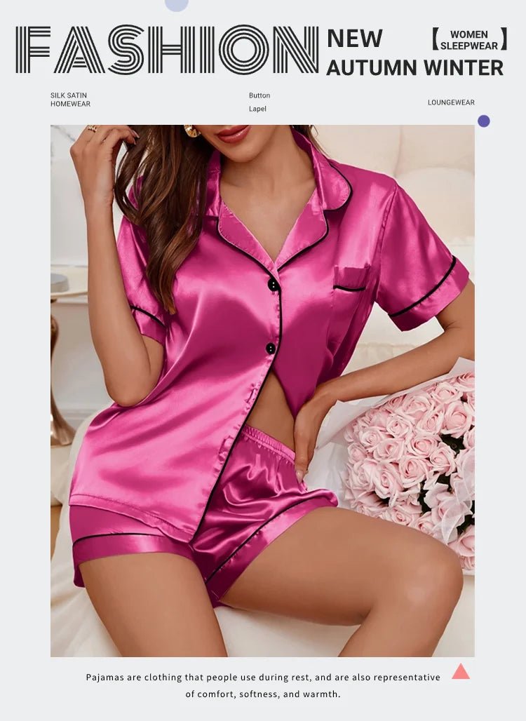 Upgrade your loungewear with this sophisticated Two-Piece Pajama Set, designed for ultimate comfort and effortless elegance. Featuring a turn-down collar, short-sleeve top, and coordinated shorts, this set blends timeless style with practicality, perfect for warm summer nights or relaxed mornings at home.