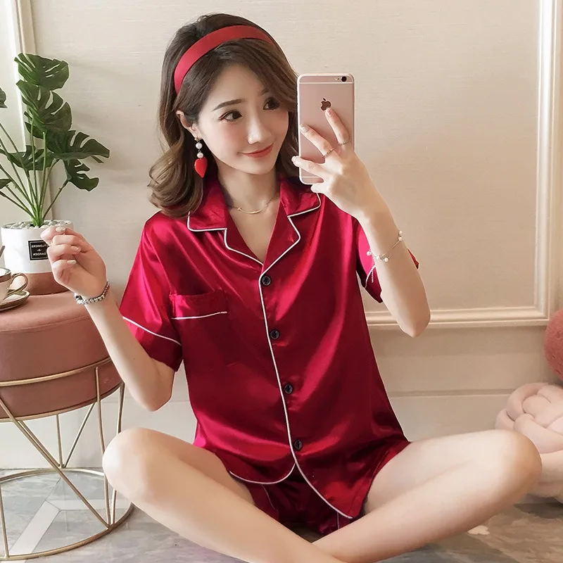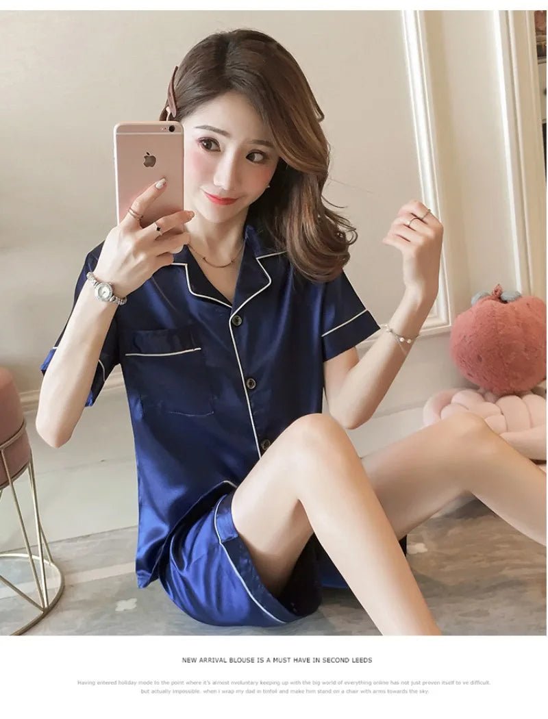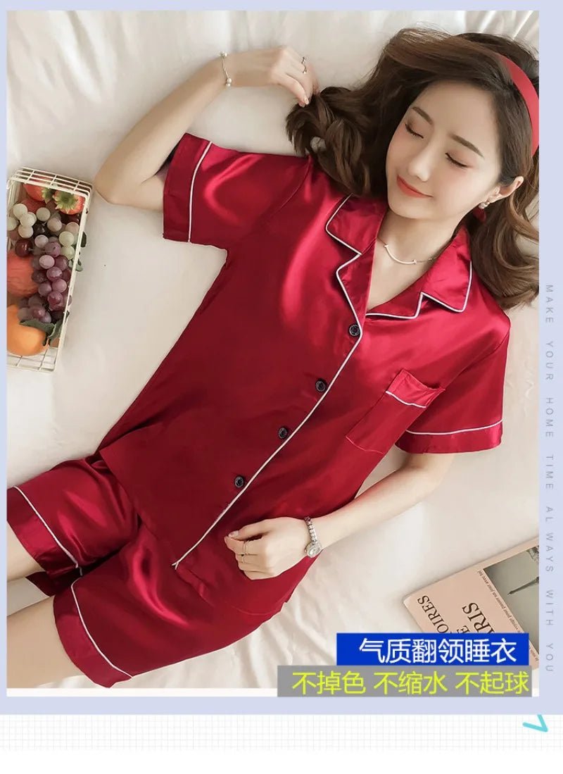 The silk-like feel of satin fabric in this classic satin pajama set for women. Satin is made from 100% polyester thread and woven into a tight weave – making it super sleek and fashionable.
