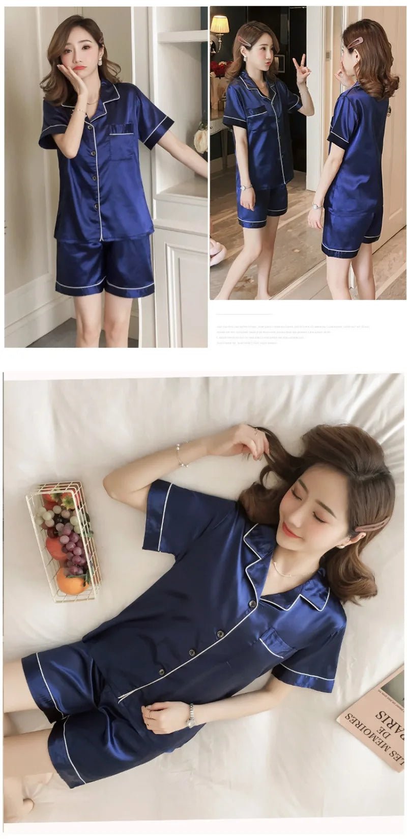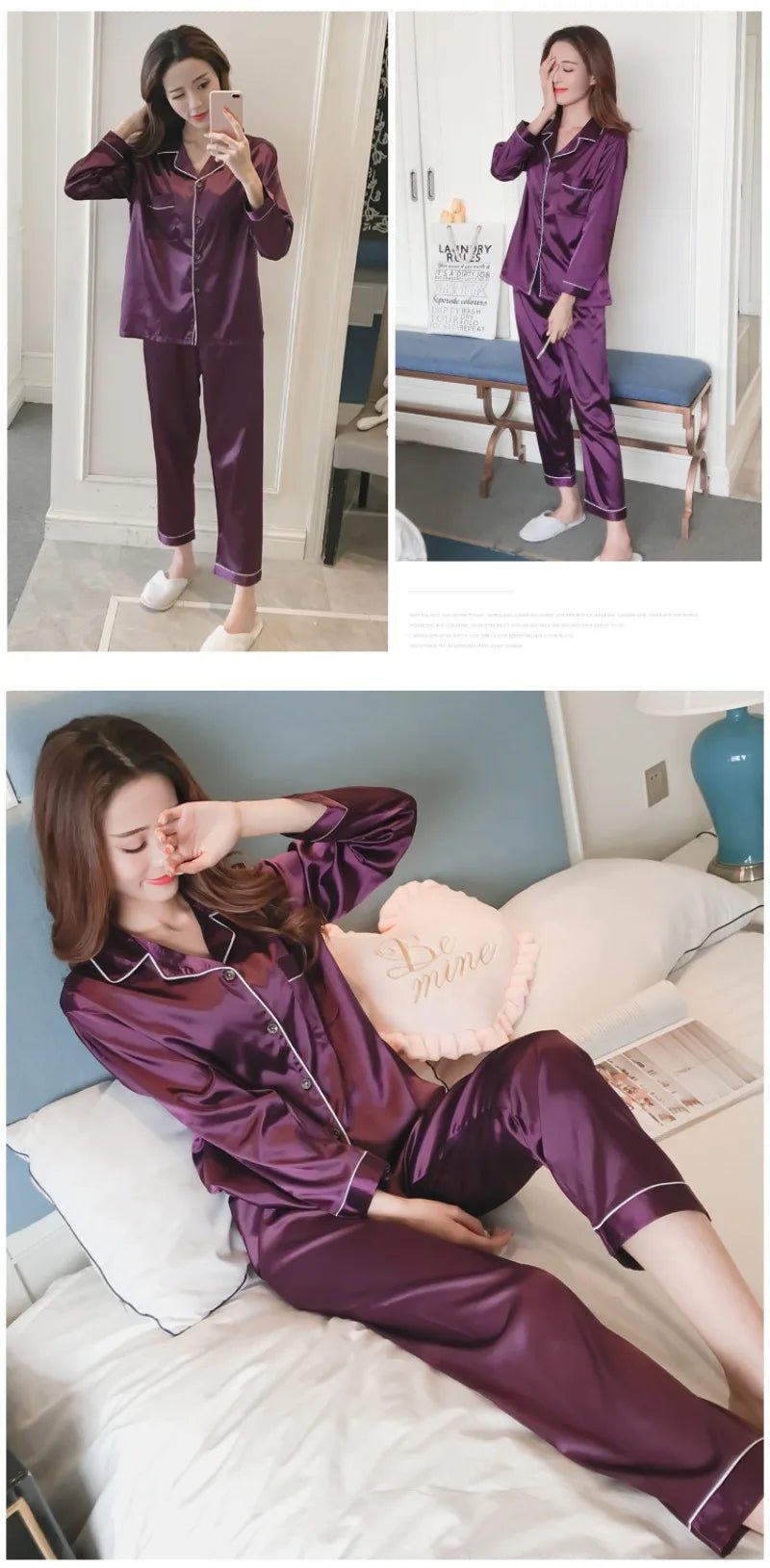 Silk Pajamas for Women 2023 Sexy Silk Women Pijama Sets Sleepwear Long-sleeve Cardigan Female Ice Silk Home Pijama Mujer Verano