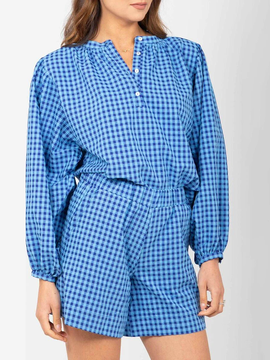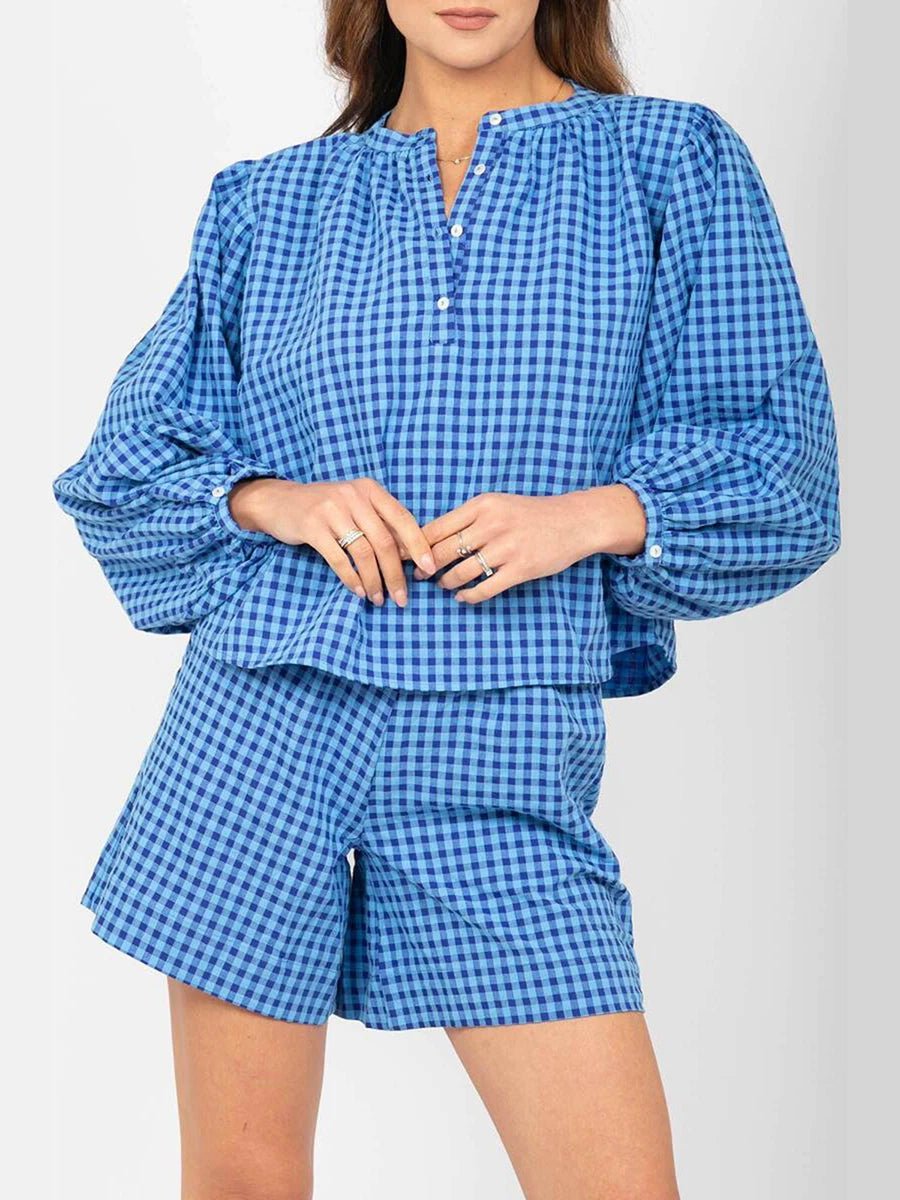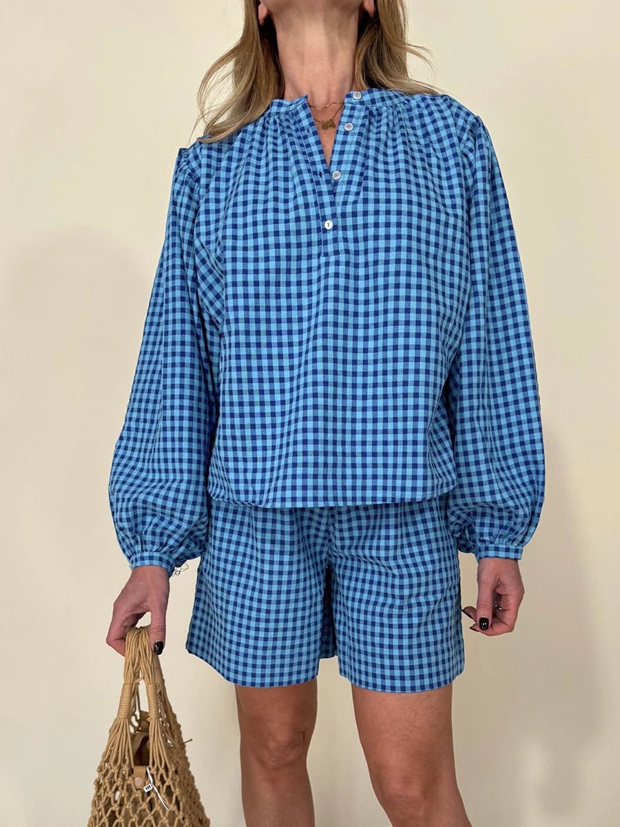 Women Pajamas Set 2 Pieces Loungewear Suits Plaid Buttons Long Sleeve Loose Tops and Shorts Sleepwear Outfits